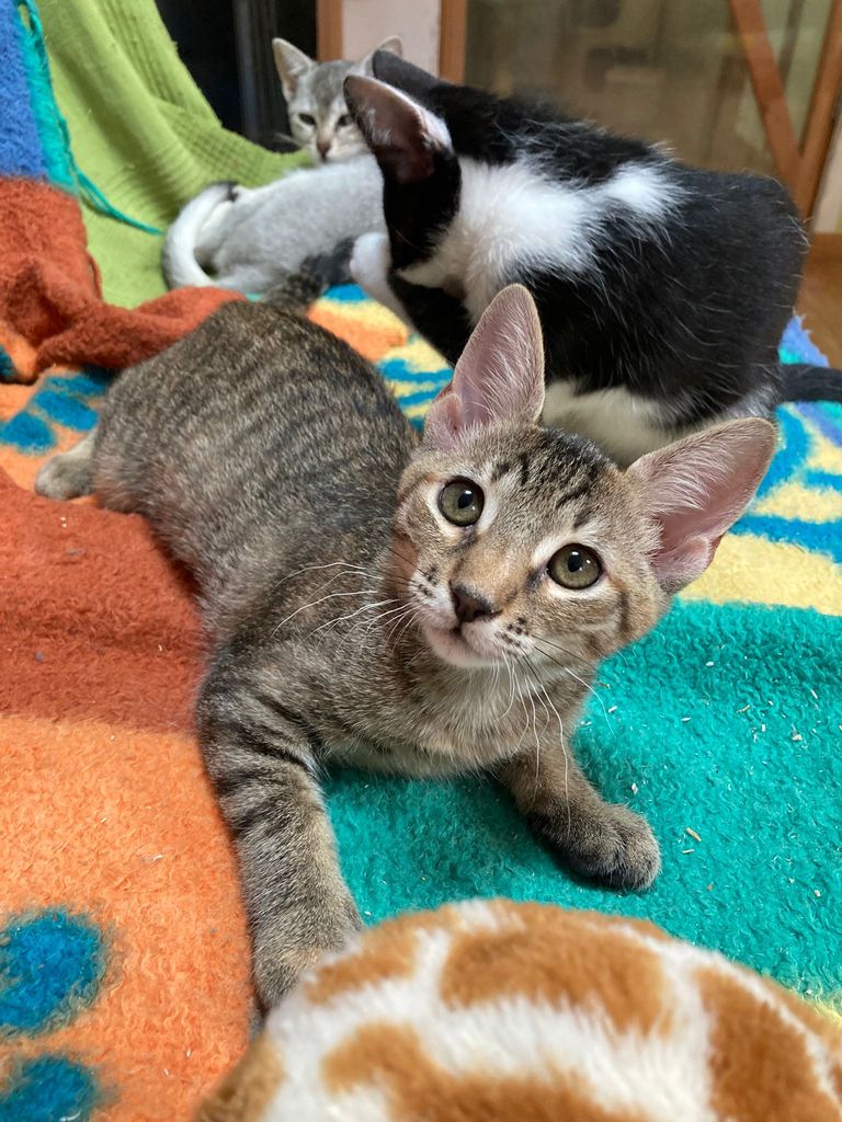 Sie stammen von einer Freilebenden Katze und wurden recht spät eingefangen ohne wirklichen Kontakt zum Menschen.